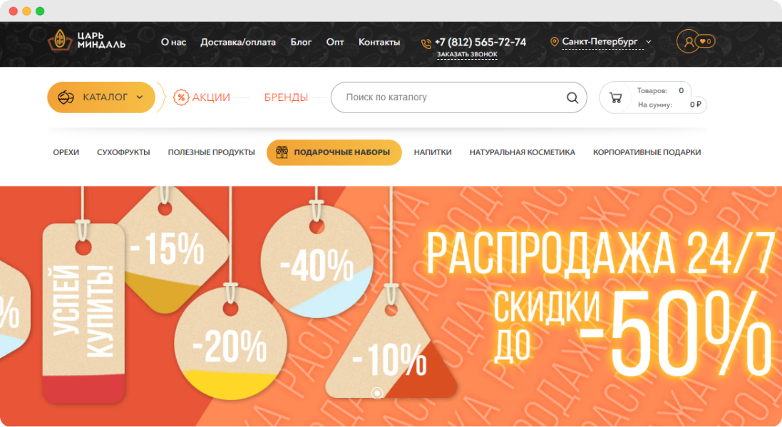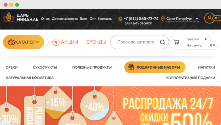 Царь Миндаль – компания, созданная двумя молодыми людьми, развивающими культуру здорового питания. Изначально Царь Миндаль – это интернет-магазин, в котором можно купить орехи и сухофрукты в СПб. Со временем ассортимент расширился, сейчас в Царь Миндаль можно купить более 1000 товаров для здорового питания, натуральную косметику и подарочные наборы